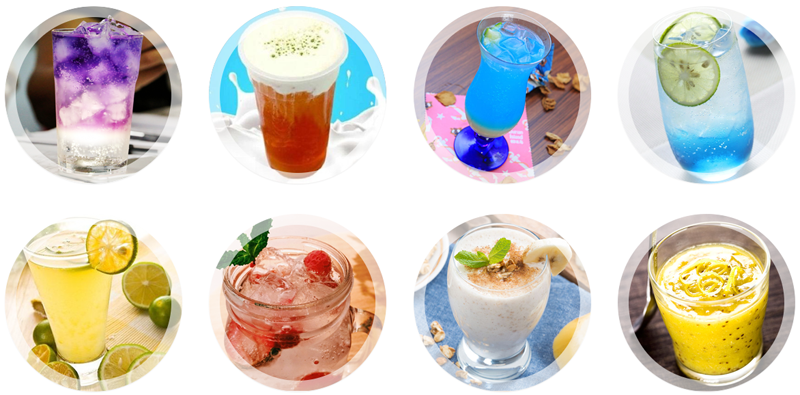 海洋之星氣泡、紫色之戀氣泡、藍柑氣泡、金桔檸檬氣泡、草莓之約氣泡